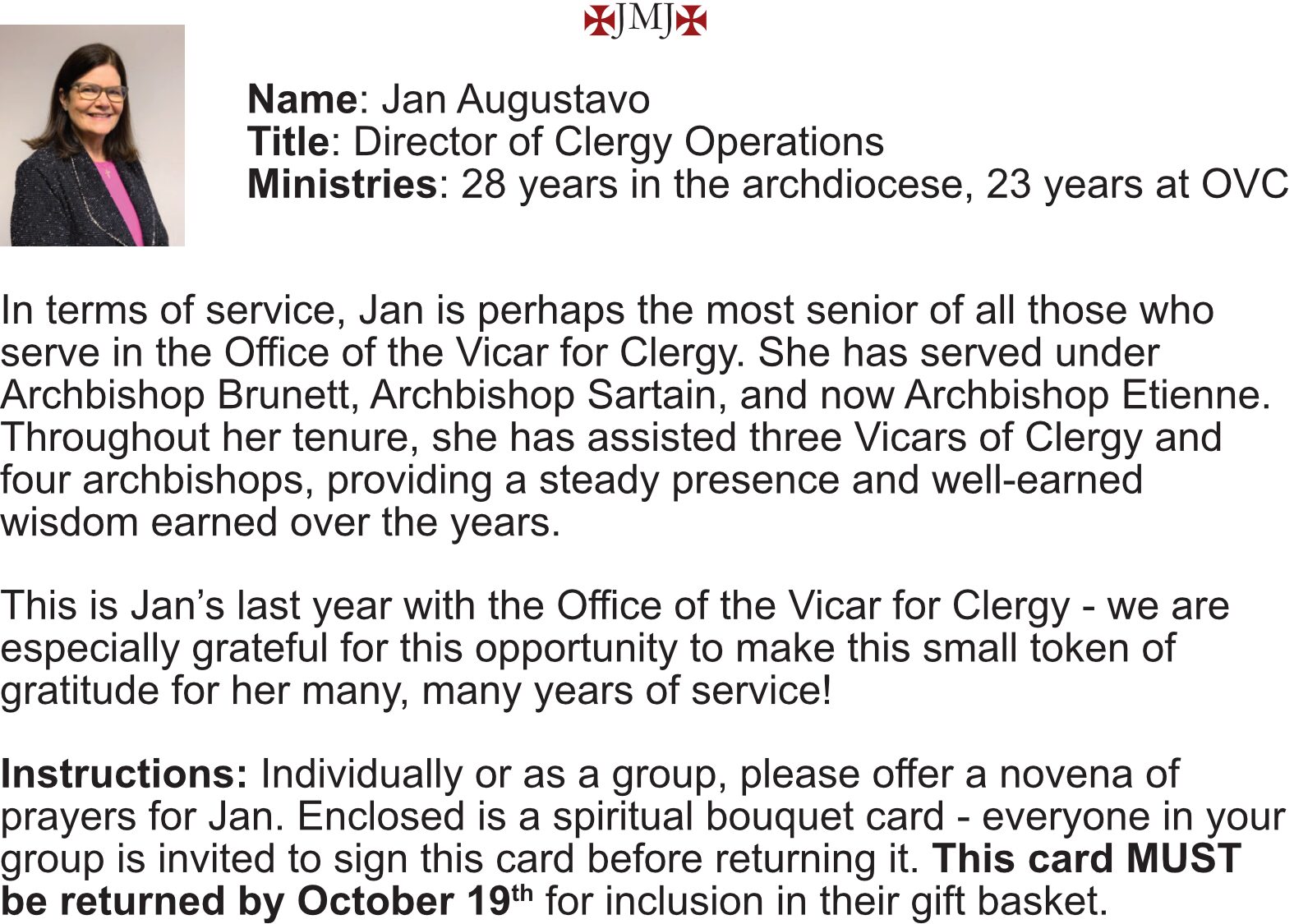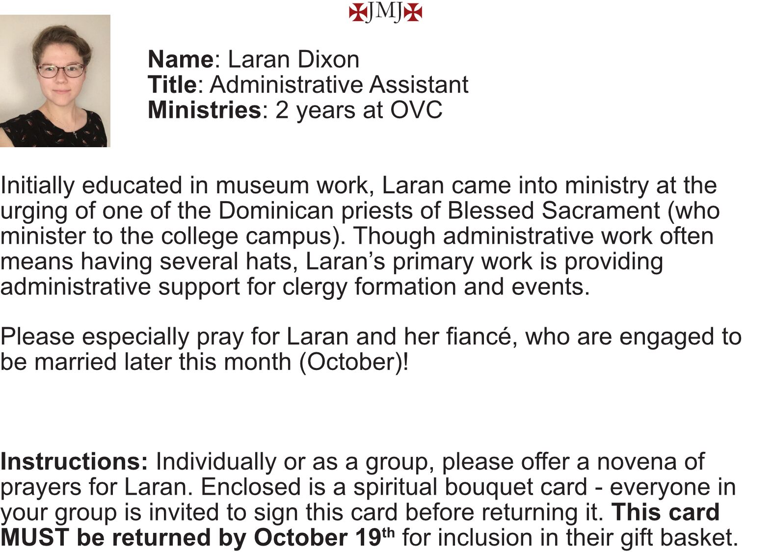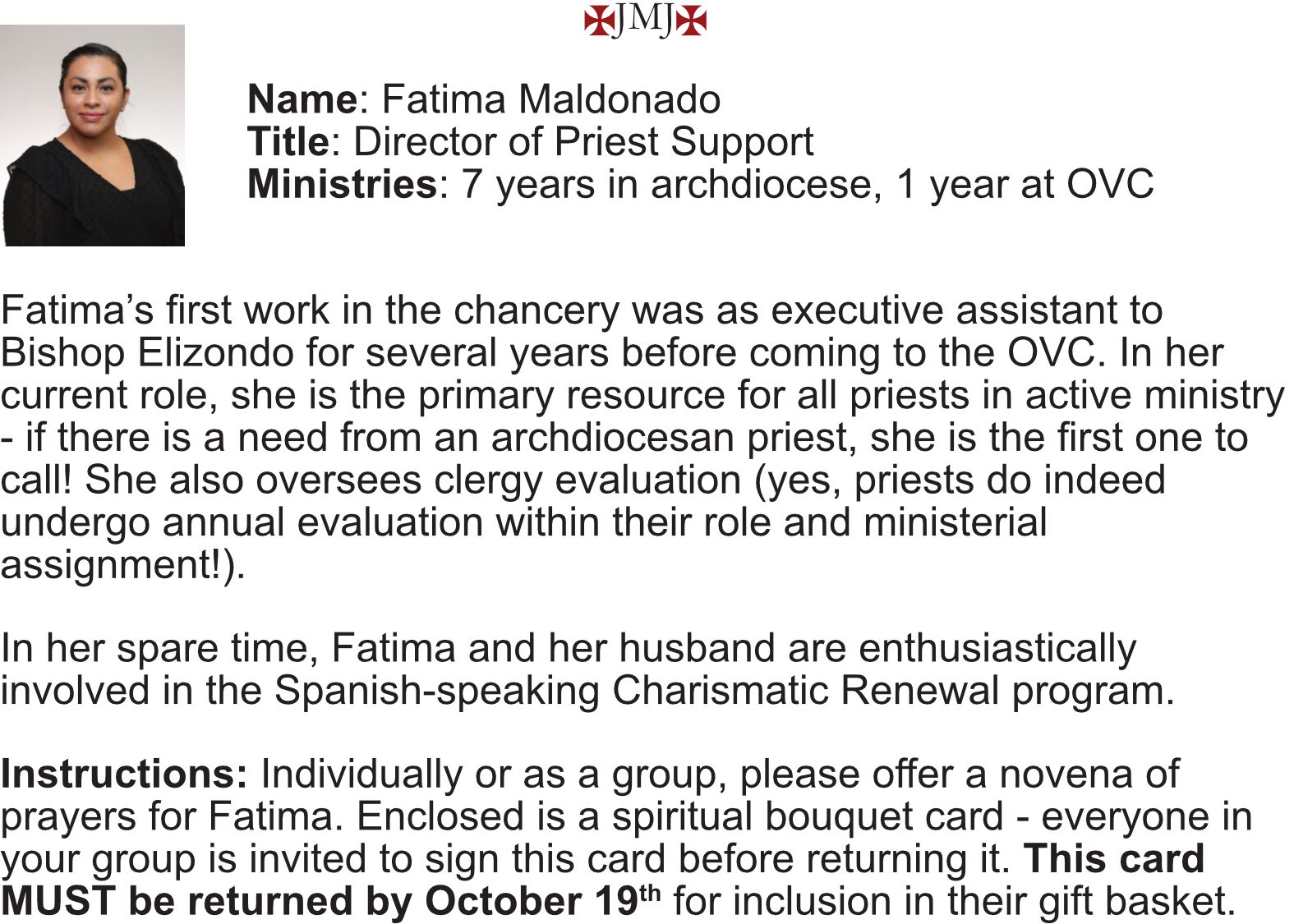 But the heart of this effort was – as all things ought be! – rooted in prayer. With a little bit of sleuthing and some discreet information-gathering, brief biographies of each OVC staffer were put onto postcards. Word went out to our parishes and school: would you be willing to adopt an OVC staffer, pray a novena for them, and sign & send a thank-you card to them? It was my hope that we would have two, maybe three cards for each member of the OVC.