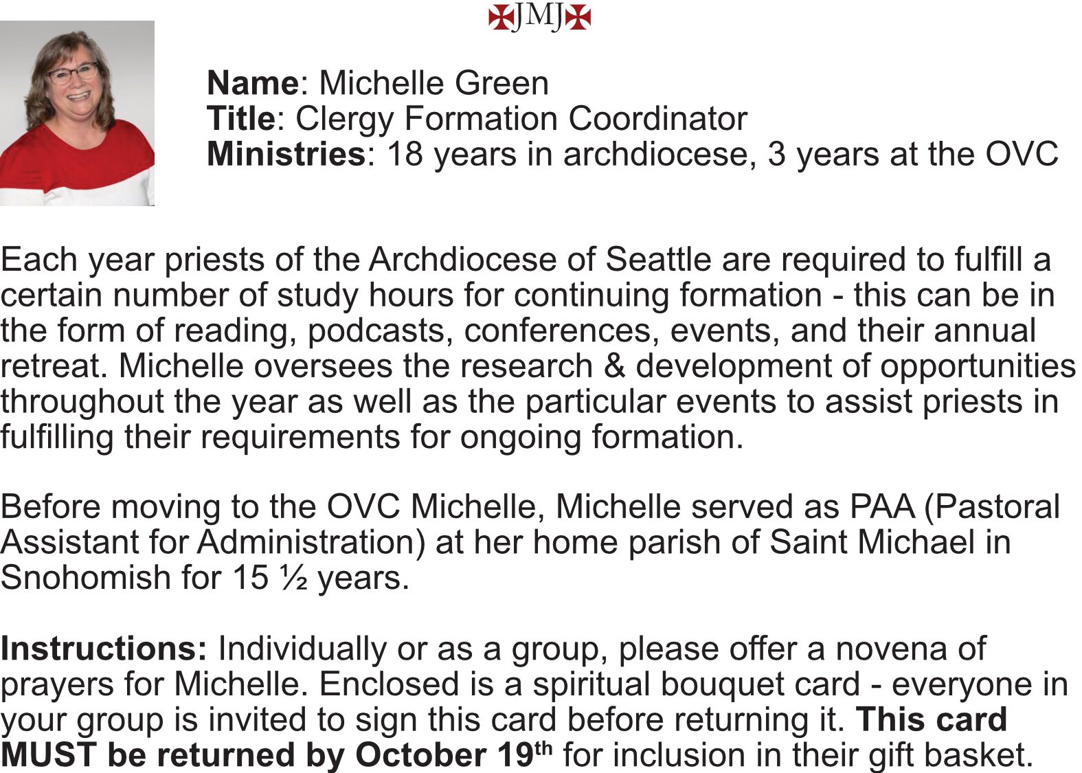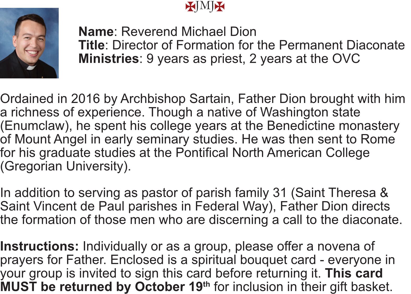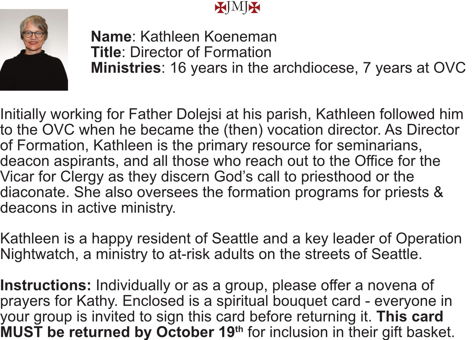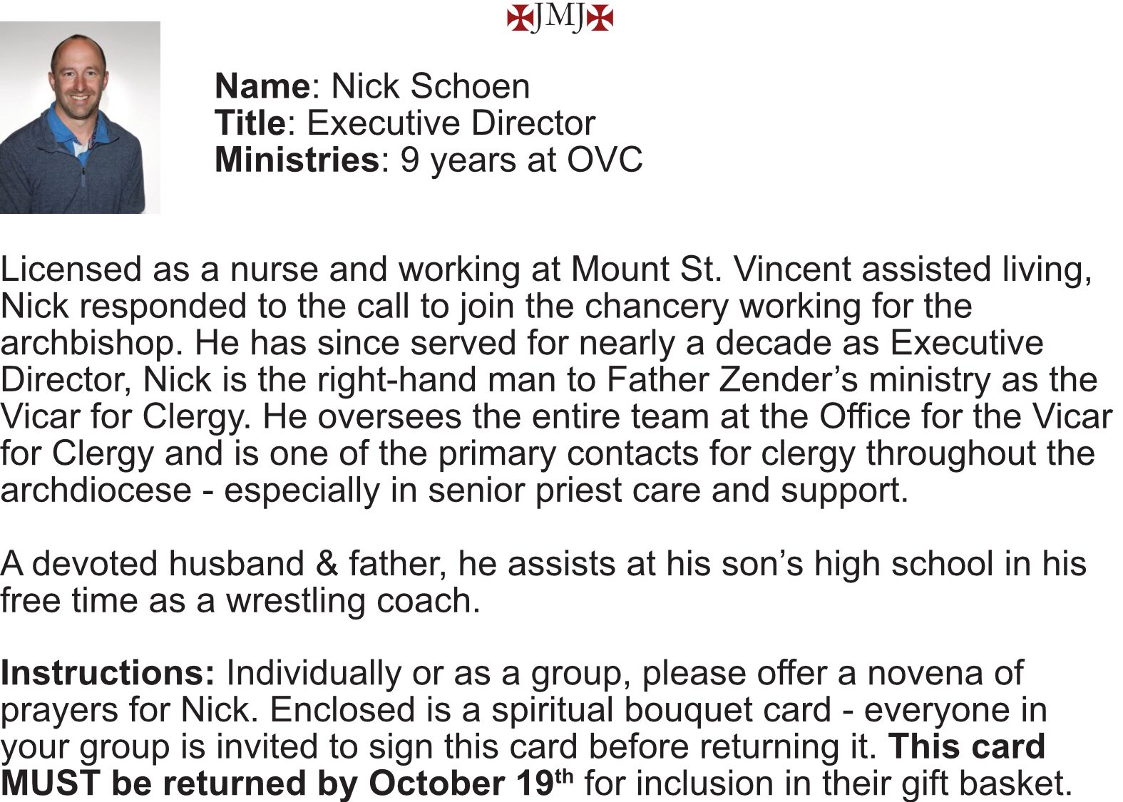 But the heart of this effort was – as all things ought be! – rooted in prayer. With a little bit of sleuthing and some discreet information-gathering, brief biographies of each OVC staffer were put onto postcards. Word went out to our parishes and school: would you be willing to adopt an OVC staffer, pray a novena for them, and sign & send a thank-you card to them? It was my hope that we would have two, maybe three cards for each member of the OVC.